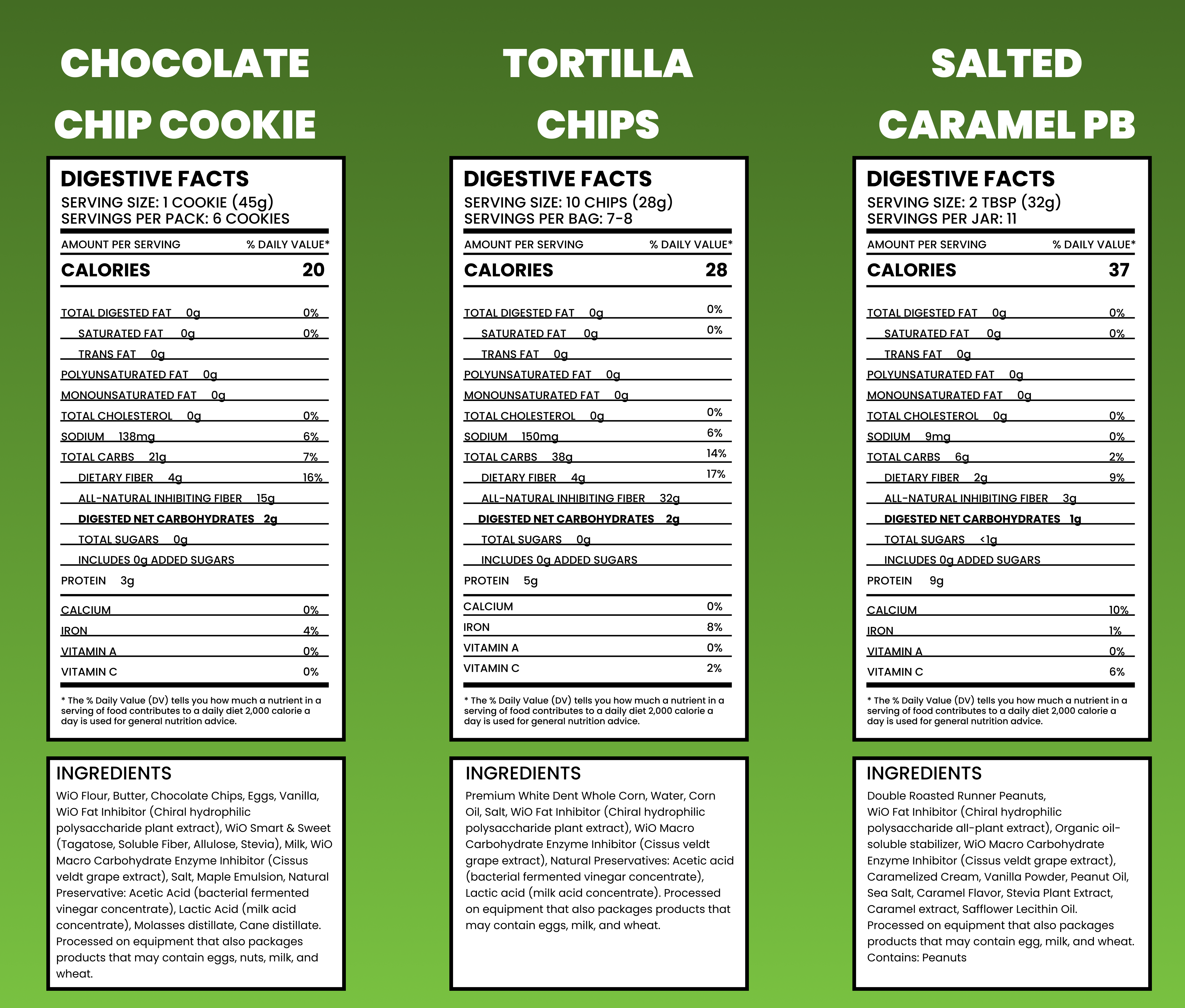 So many of the foods we love are off limits on a healthy diet because of the unhealthy levels of fat, carbs, and sugar. With WiO, you get to enjoy the foods you love without the digestive consequences of traditional versions. Plus, our techonology keeps all the flavor and texture you expect.
